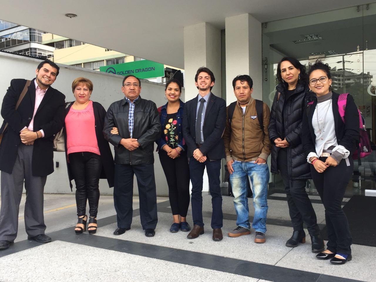 Alicia Barros y Bolívar Ayol con el equipo jurídico de Inredh en los exteriores de la Corte Provincial de Pichincha. Foto: archivo Inredh