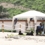 Antes de la tarde, ascendimos al Mirador de Salango. Bajo un cielo despejado que deslumbraba con su azul, la vista era majestuosa: el mar infinito, salpicado de barcas de pescadores y el perfil de la isla. Allí había funcionado el comedor comunitario, epicentro de encuentros y turismo. Hoy, los muros nuevos y los árboles plantados por manos del extranjero lo habían cercado. Jorge Núñez, con voz pausada, resumió la pérdida: «Sembraron árboles para tapar la vista, hicieron linderos donde nuestra comunidad compartía. Nos arrebataron ese espacio colectivo, donde varias familias trabajaban».