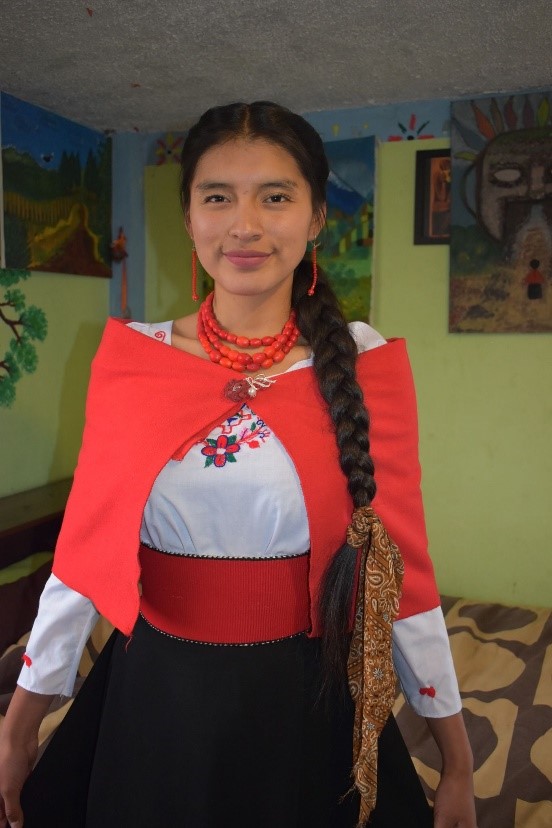 Mujer kichwa del Pueblo Kisapincha de 22 años. Estudiante de séptimo semestre de Relaciones Internacionales con dos subespecializaciones en Ciencias de la Educación y Nutrición y Dietética en la Universidad San Francisco de Quito. Interesada en estudios de derechos humanos, derechos de la naturaleza, derechos de los Pueblos y Nacionalidades Runa, educación, salud, género, seguridad alimentaria, nutrición infantil, emprendimiento, negocios digitales, negociación y cooperación internacional.