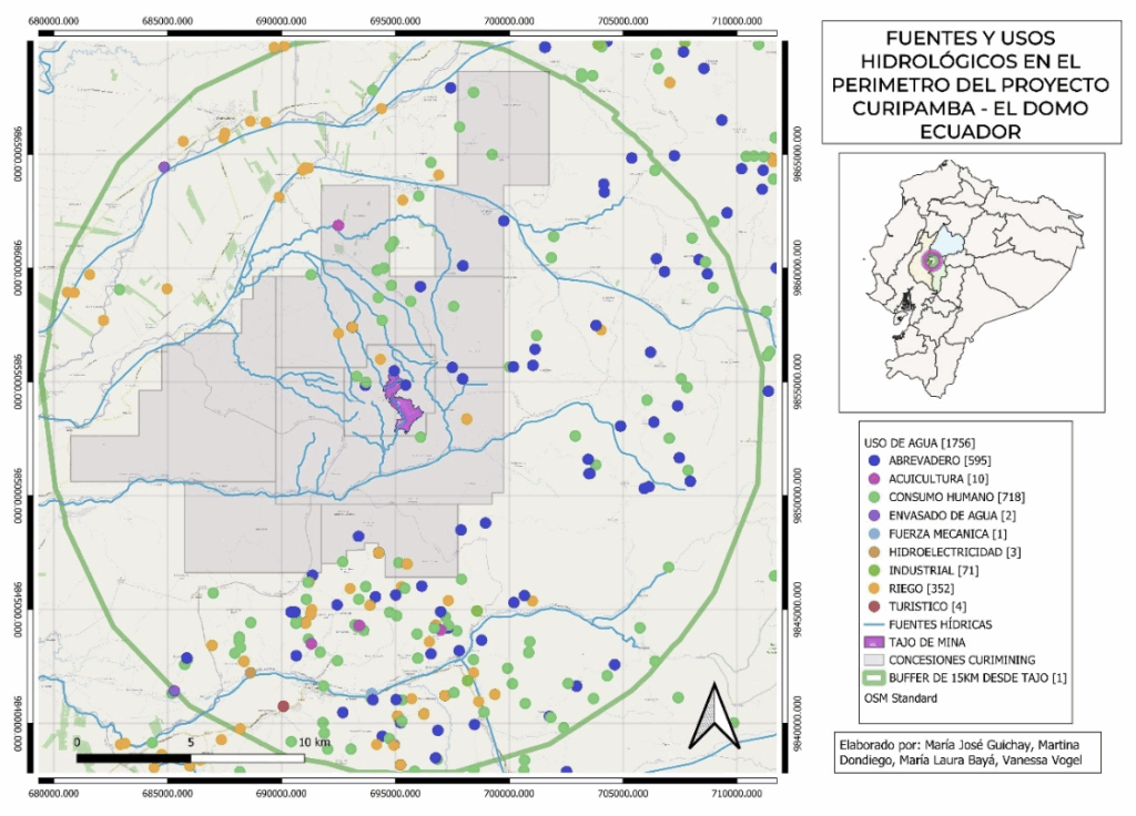 Se presenta como un proyecto minero “sostenible con el medio ambiente”, pero hasta qué punto podemos calificar una minería a cielo abierto que atraviesa dos cauces de cuerpos de agua del río Naves Chico y El Silencio (ver mapa 1), manteniendo una sensibilidad alta de los usos de recursos hídricos, califica con 0 de sensibilidad cambios en el uso de suelo, el turismo y las actividades productivas dentro su Estudio de Impacto Ambiental (EIA) y vendrá a ocupar el tercer lugar de mega minera después del Mirador y Fruta del Norte.