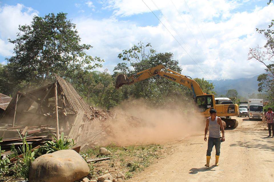 Con maquiaria pesada destruyeron las casas de varias familias de Tundayme. Foto: archivo/Cascomi